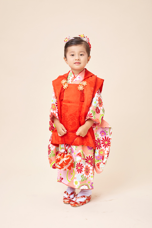 七五三のお子様が2パターン(全身とバストショット)の撮影で2ポーズ。